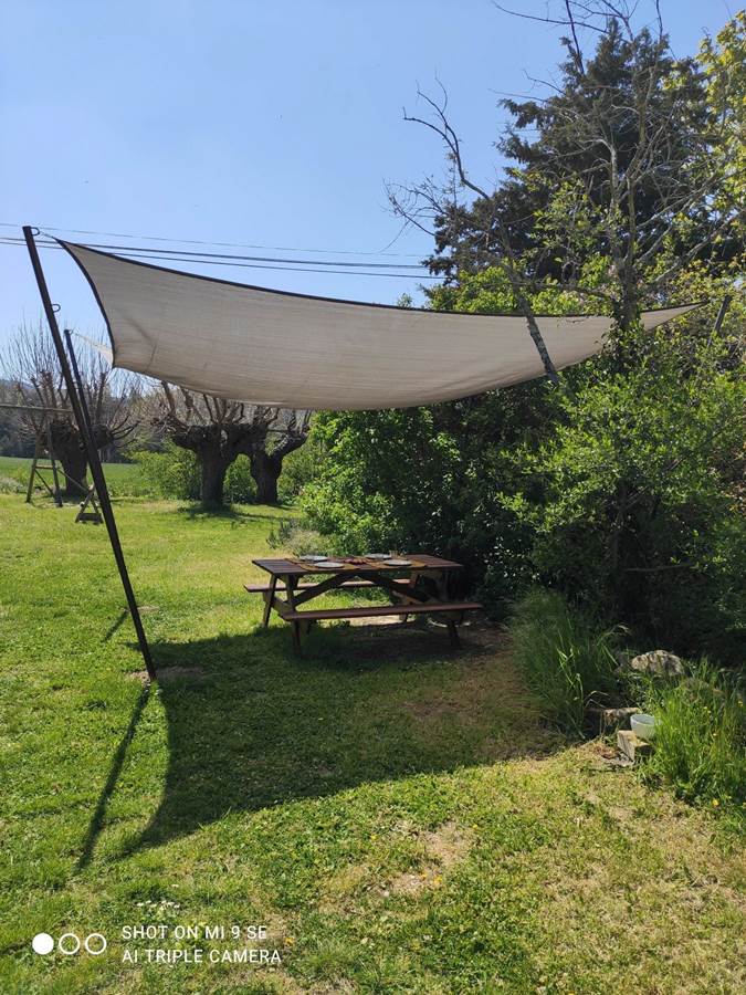 Accés indépendant, mini terrasse avec une treille ombragée et une grande ombrière au Sud pour des repas en extérieur.